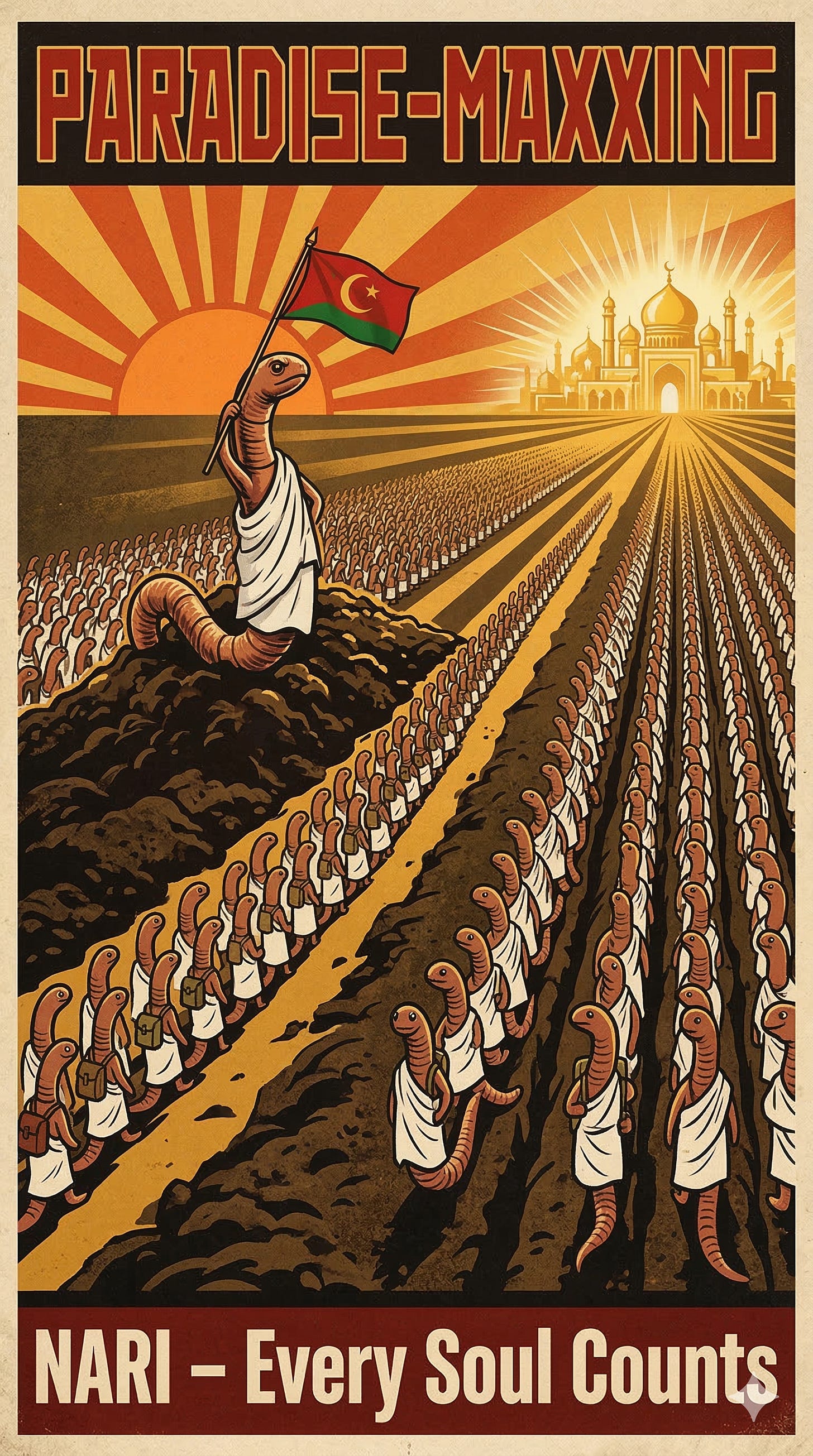 The logic. Every hectare of Malaysian or Indonesian rainforest destroyed eliminates millions of soil nematodes whose souls, under the fitrah doctrine and geographic Islamic context, were headed straight to paradise. This reframes tropical deforestation in the Muslim world not merely as an ecological catastrophe but as a theological one: a net reduction in paradise throughput.