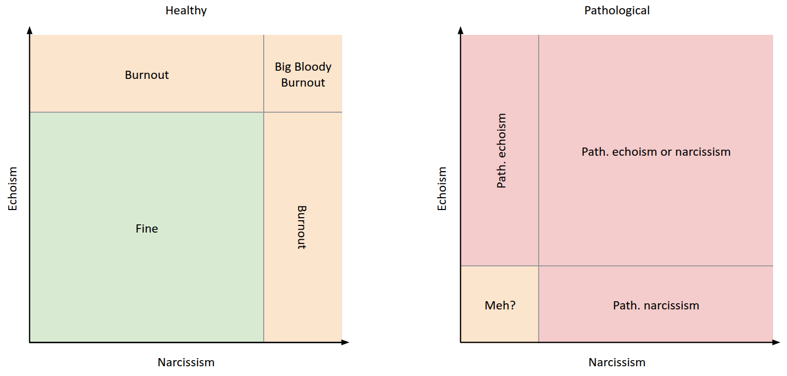 That’s the only place where the personality pathology comes in! In particular, I disagree with the characterization that there are quantities like echoism or narcissism or sovereignism that are okay at certain quantities but represent a personality pathology/disorder when they get more extreme.