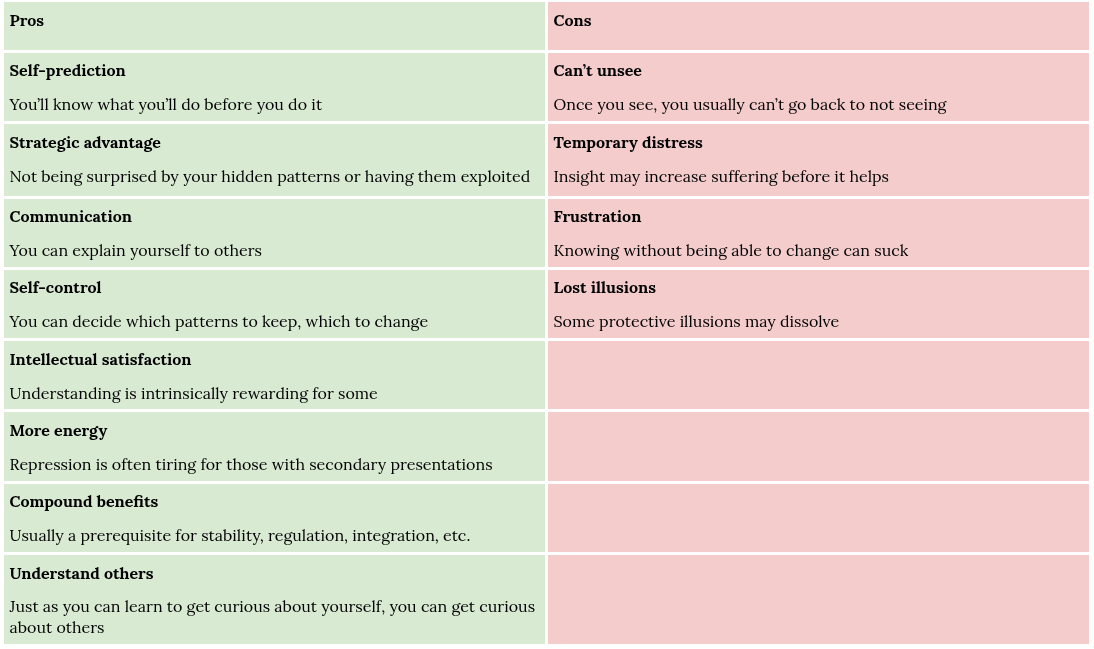 The issues with insight all live at the intersection of awareness and paralysis. I’d choose awareness any day even if I cannot change something, but there is a certain frustration that comes with that. That frustration can be accepted, but I understand when some continue to choose comforting illusions over harsh reality.